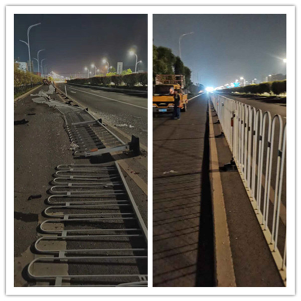 1月23日,農(nóng)歷小年,大家都沉靜在歡慶的節(jié)日氣氛里。晚上11時(shí)許,G347國道大觀區(qū)段K290+100處,中央隔離護(hù)欄因交通事故損壞傾倒近1公里,嚴(yán)重影響過往車輛通行。