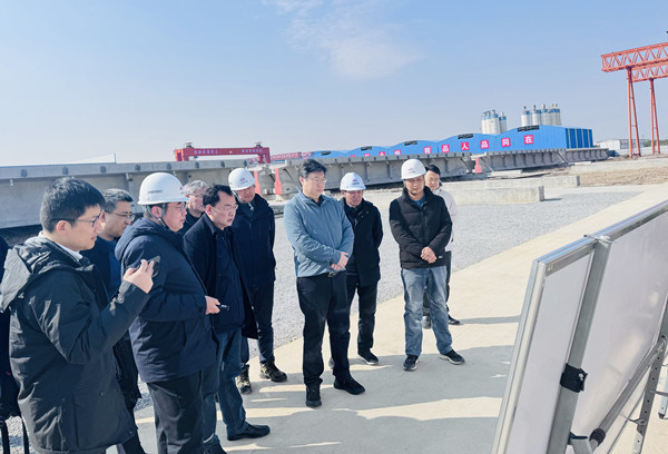 在安慶港長風港區(qū)鐵路專用線項目制梁鋪架基地,調(diào)研組一行現(xiàn)場了解項目整體進展,詳細詢問建設資金狀況、項目施工進度、燃氣管線遷改以及設計指標等情況。