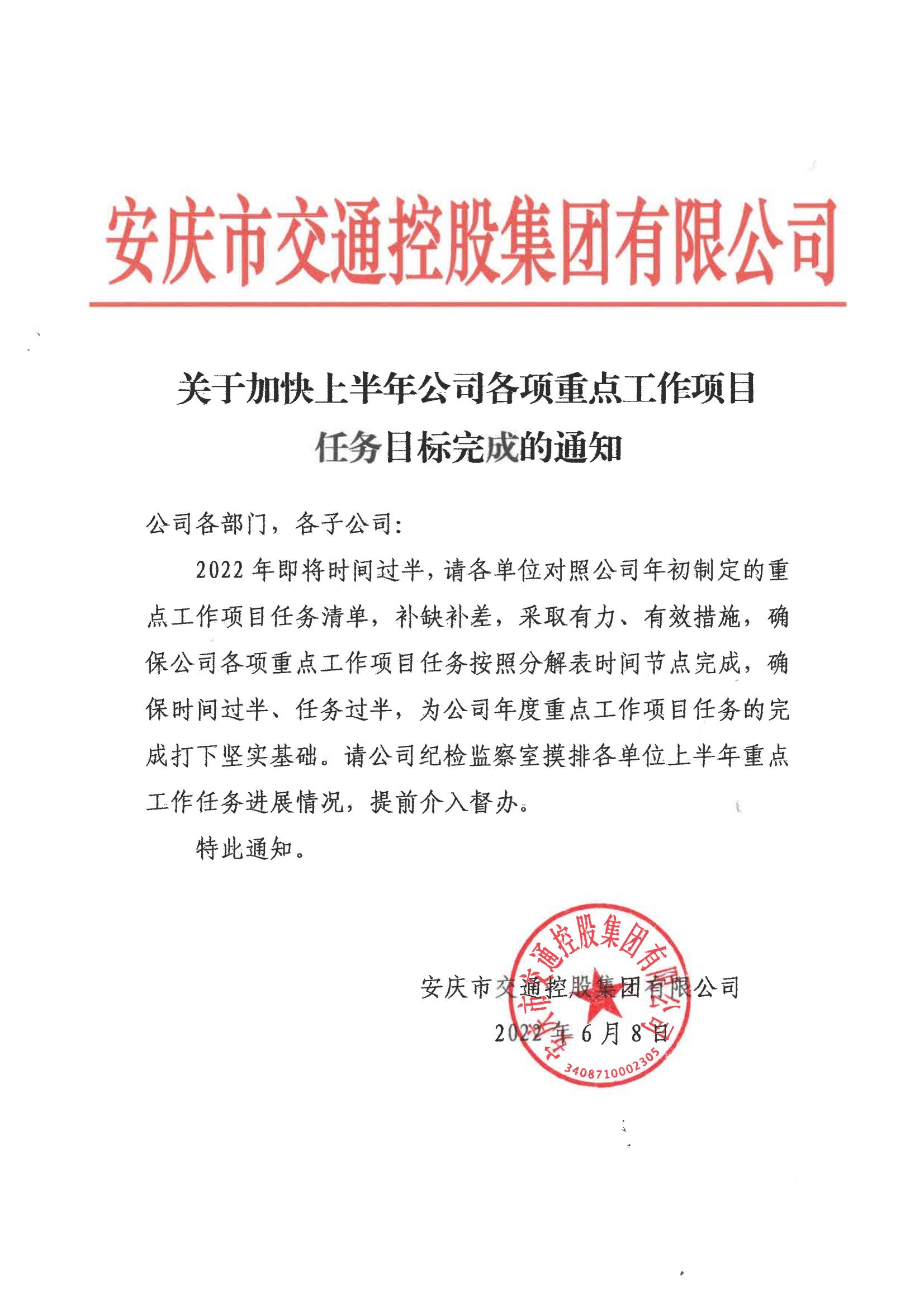 關(guān)于加快公司上半年各項(xiàng)重點(diǎn)工作任務(wù)目標(biāo)完成的通知